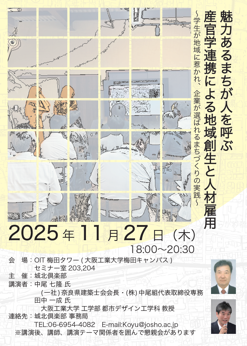 11月27日(木)18時より、学園・OIT梅田タワーにて交流会を開催いたします。今回は奈良県桜井市における会員企業と大阪工業大学による取り組みについてご紹介します。産学連携のヒントにも繋がるお話をいただきますので、ぜひこの機会にご参加ください。